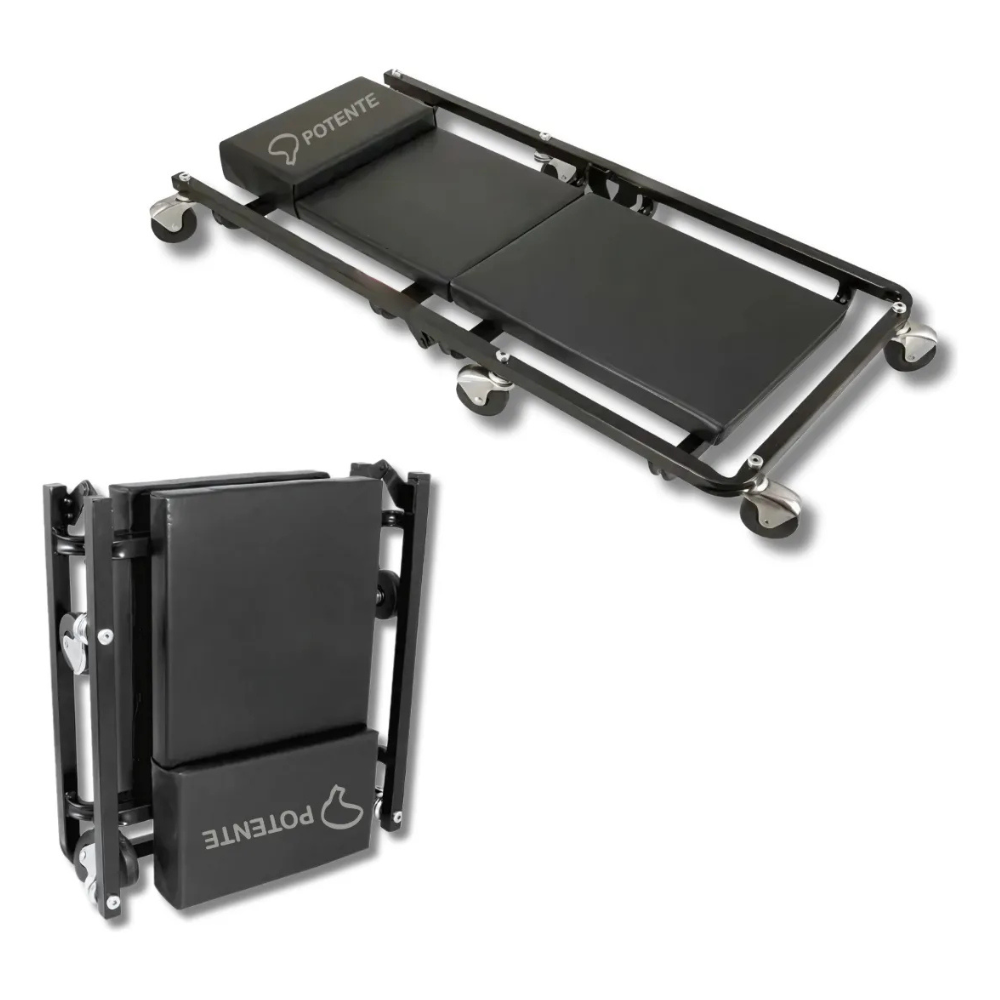 O Carro Esteira Dobrável Potente Brasil é a solução perfeita para mecânicos que buscam versatilidade e conforto no dia a dia. Com design inovador 2 em 1, funciona como esteira de trabalho e banqueta ergonômica, ideal para oficinas e centros automotivos. Na cor preta, possui 6 rodízios giratórios em polipropileno para mobilidade suave e apoio forrado para a cabeça. Suporta até 110 kg e é dobrável para fácil transporte e armazenamento 123.